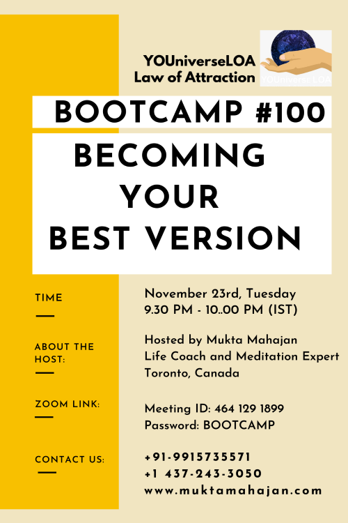 Join our Bootcamp # 100 - on 23rd November 2021, where you will learn how to become your best version by balancing your spiritual, emotional, physical and financial wellbeing.